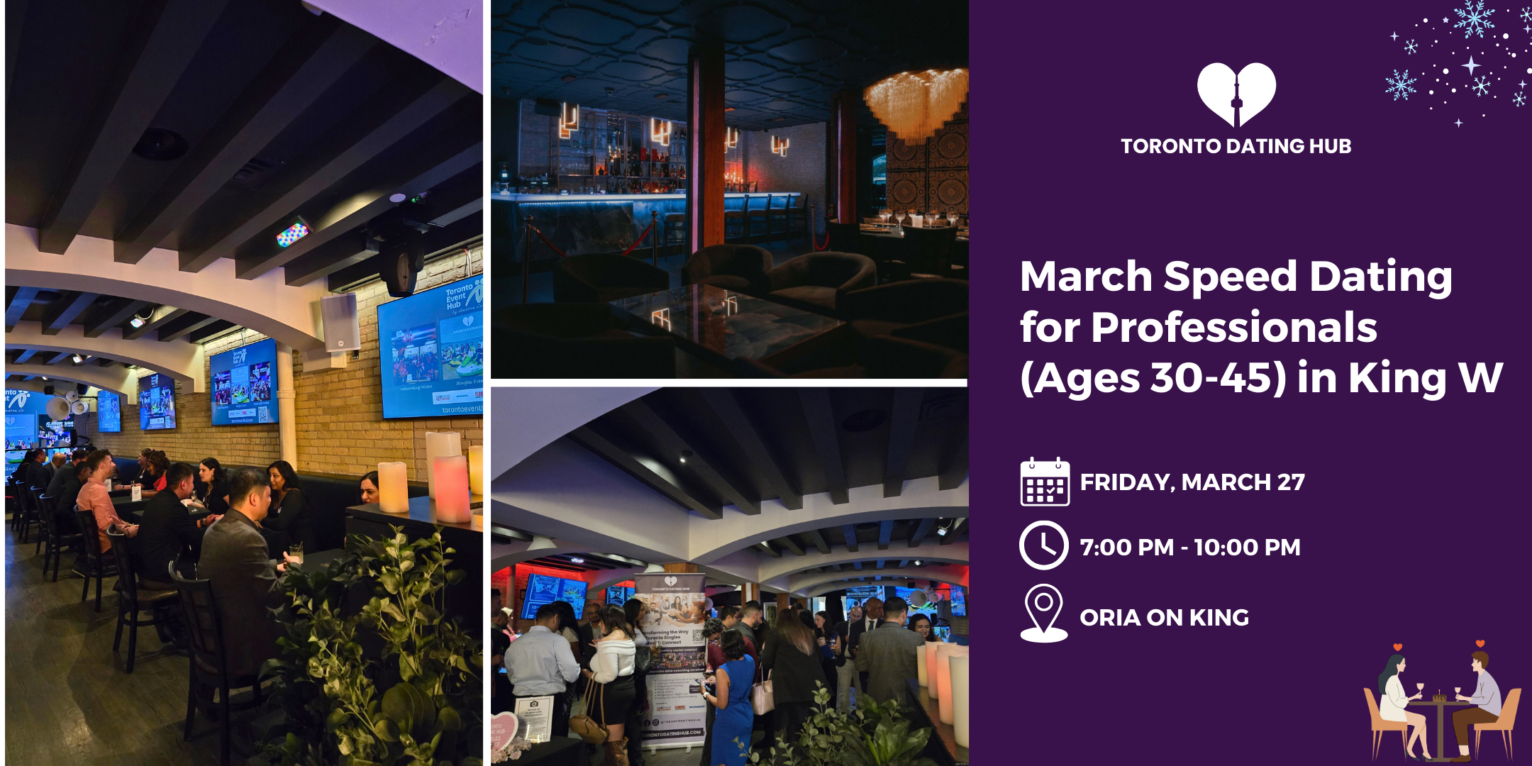 If you're looking for a low pressure way to meet likeminded singles, join Toronto Dating Hub's signature mixer on March 18th at the chic Oria on King lounge.