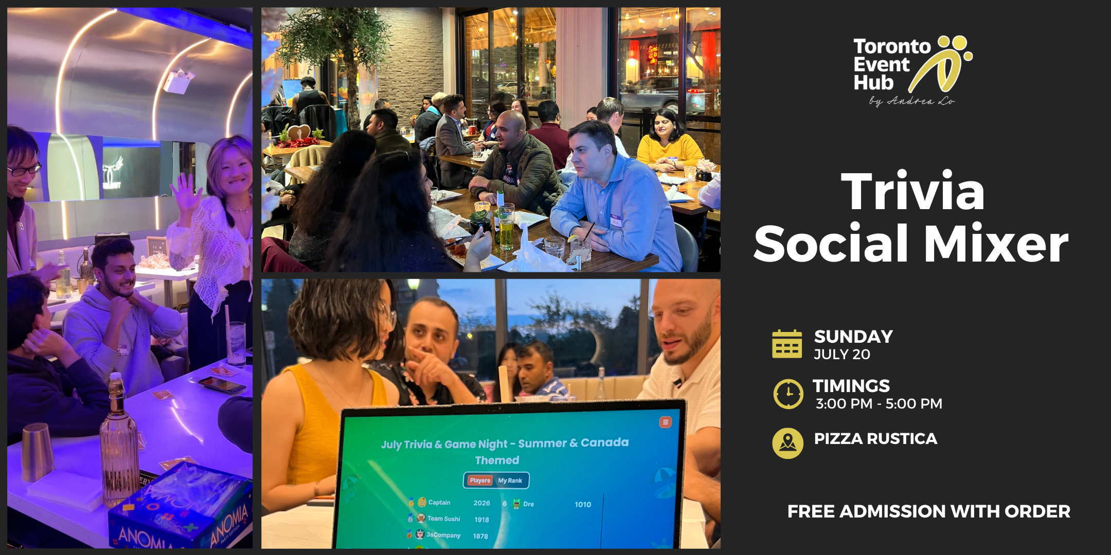 Come to our social to make new friends and play live trivia (to win prizes!). You can order food & drinks on site at Pizza Rustica.