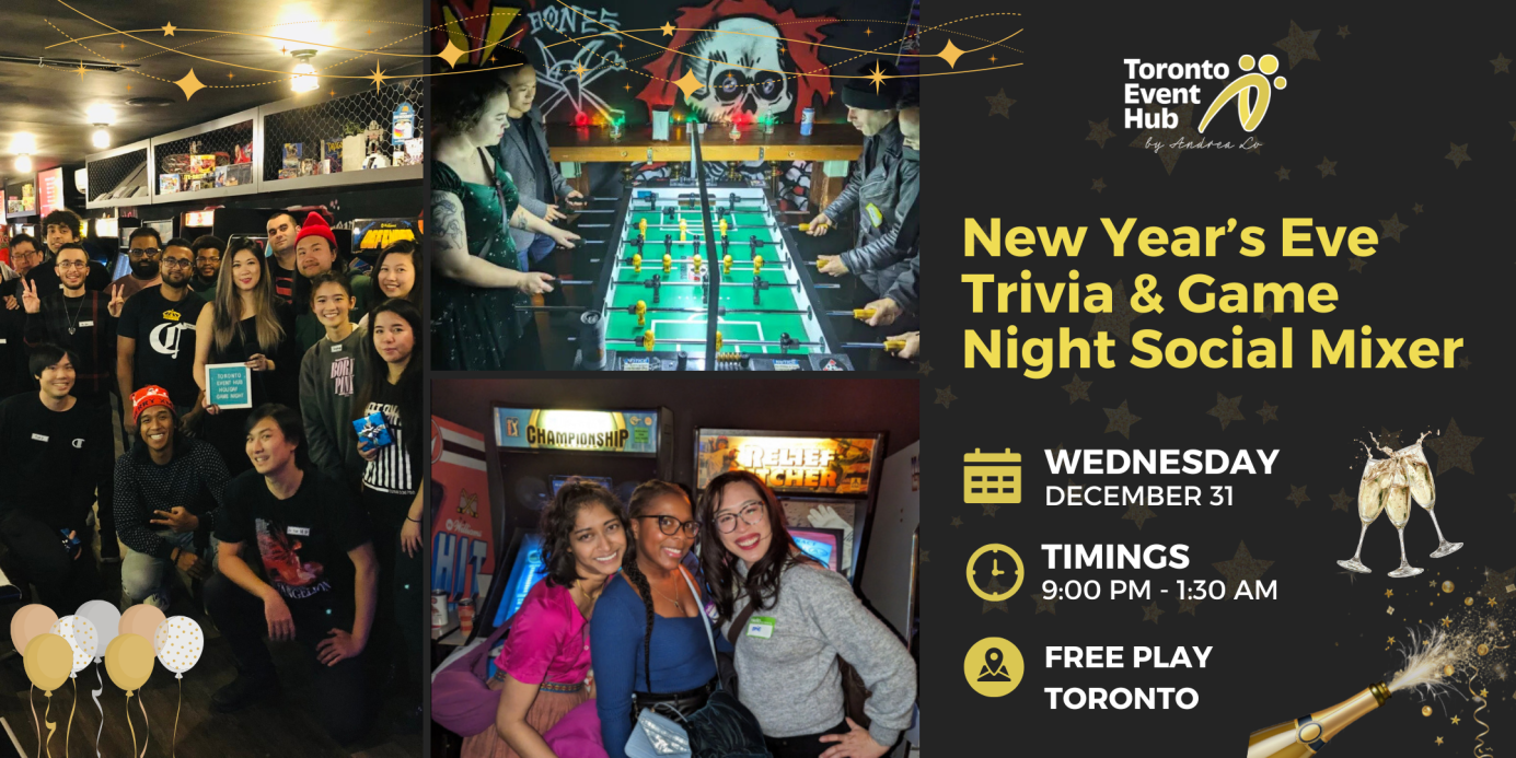 Toronto Event Hub is bringing together its 3 brands together for the ultimate NYE Party! We are combining Toronto Game Night, Toronto Dating Hub & Toronto Event Hub communities altogether!